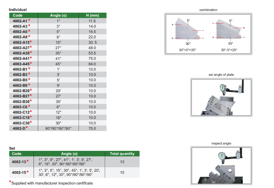 Angle Gauge Block Sets | Insize 4002 Series | Ranges from 1° to 99°