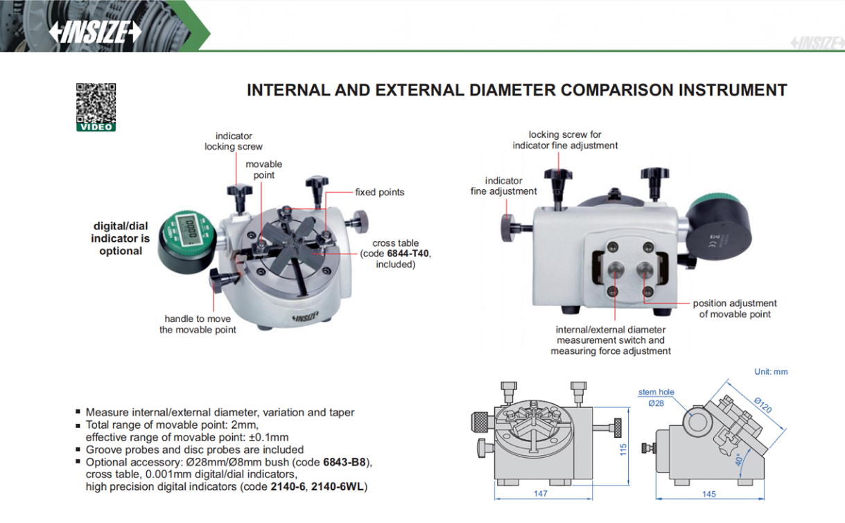 Internal & External Diameter Comparison Instrument | Insize 6844-100 | Internal Range 20-100mm/0.8-3.9" External Range 15-80mm/0.6-3.1"