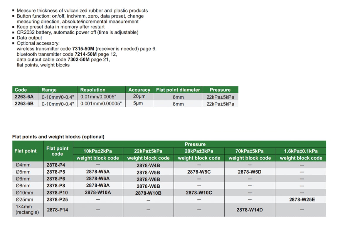 Thickness Gauges | Insize 2263 Series | Range 0-10mm/0-0.4" | Resolution 0.01mm/0.0005" or 0.001mm/0.00005" |