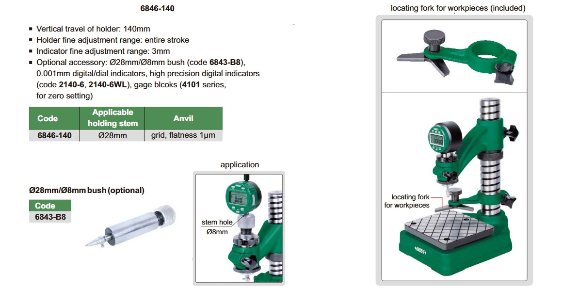 DiaI Indicator Stand | Insize 6846-140 | 140mm Travel | 3mm Fine Adjustment